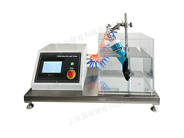 易焓仪器手套气密性测试仪适用于测定防化学物质手套,微生物防护手套,消防手套等的气密性,以保护佩戴者免受生物,化学品污染或伤害。测试时,将手套固定在夹具上,夹具浸入水中,向手套充气,一定时间观察是否有气泡产生。